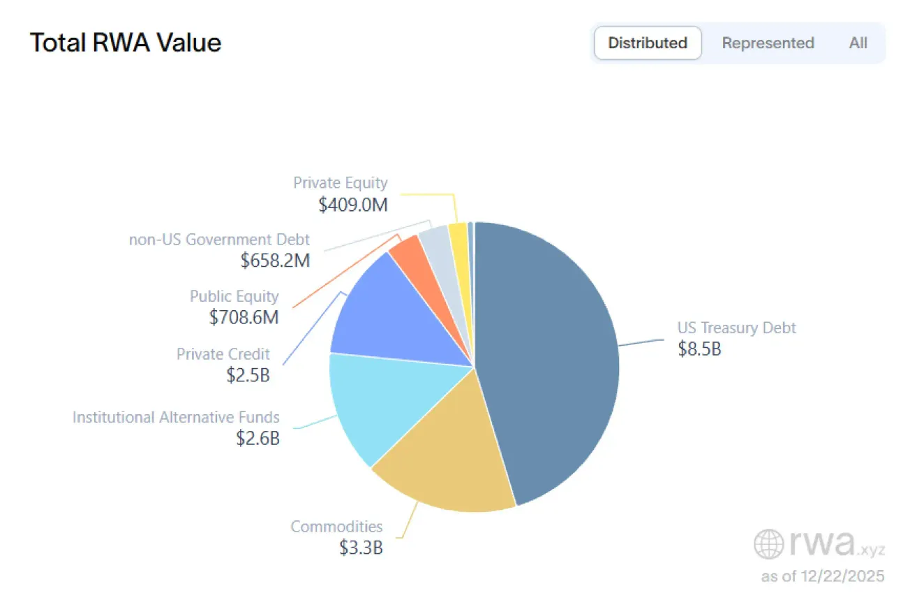 | Total on-chain RWAs (Distributed Asset Value) | $18.87B | +$0.26B (+1.40%) |